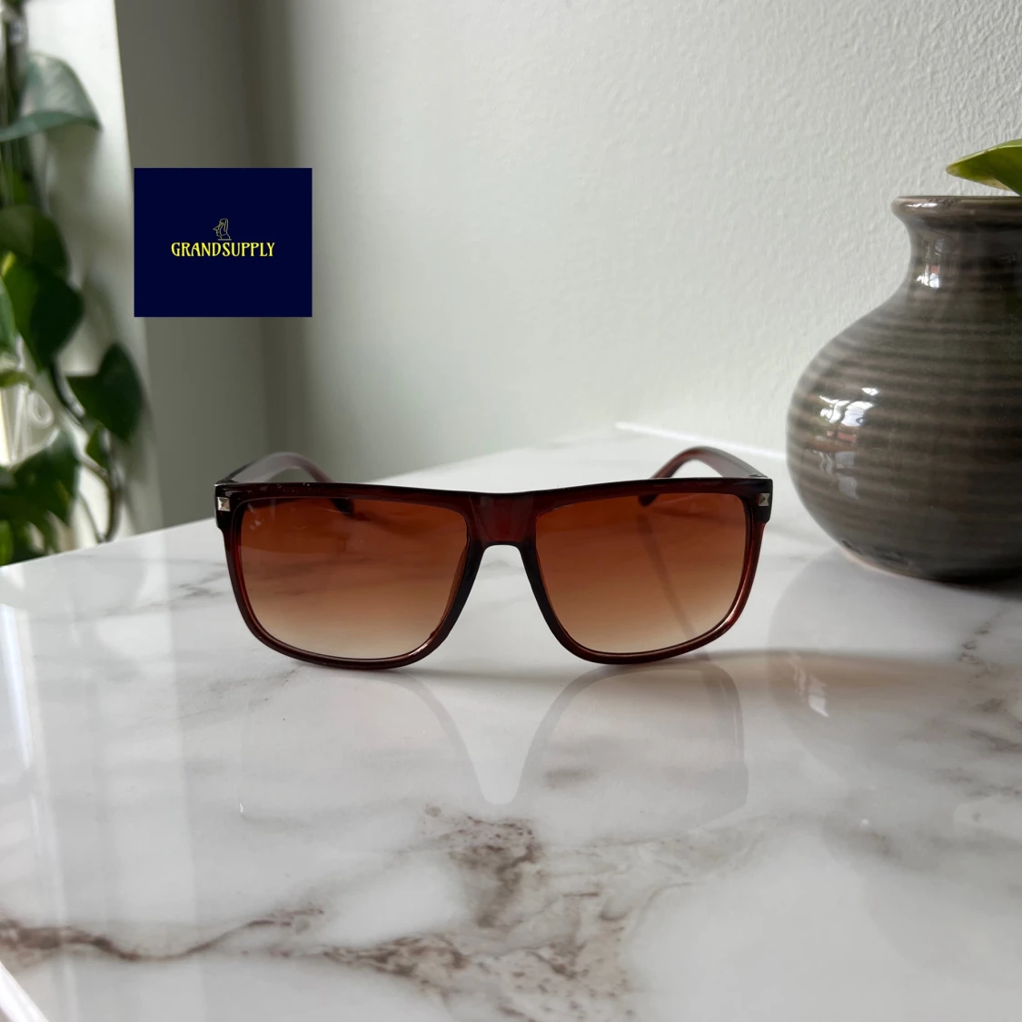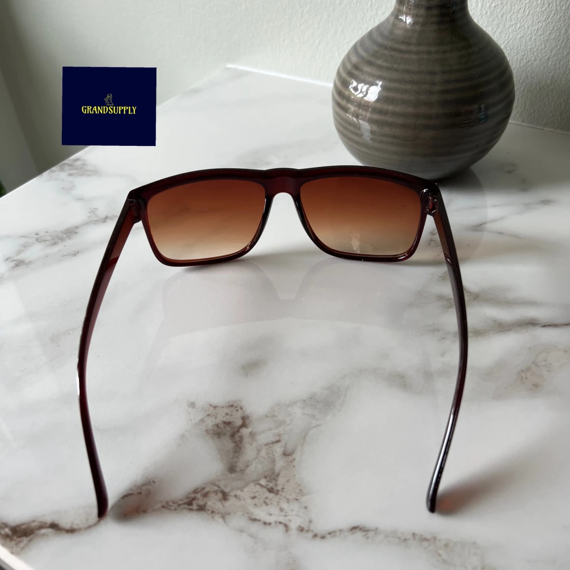 Snygga solglasögon med rektangulär form och bruna bågar. Glasen är tonade i brunt och ger en cool vibe till din look. Perfekta för soliga dagar när du vill sticka ut lite extra.