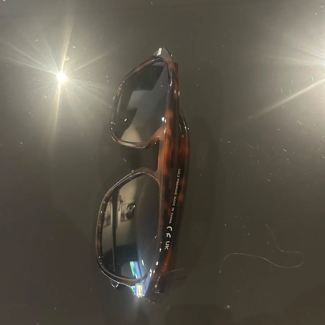 Snygga solglasögon från Pier One med klassisk brunmelerad båge och svarta glas. Modellen har en rak och stilren form med diskreta silvriga detaljer vid gångjärnen. Perfekt accessoar för att höja din look under soliga dagar. Helt oanvända!
