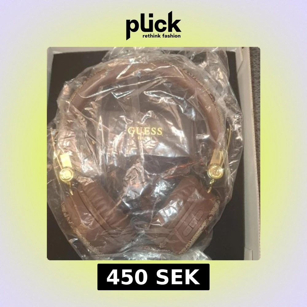 Snygga trådlösa hörlurar från Guess i brunt med guldiga detaljer. De har ett stilrent mönster och bekväma öronkuddar. Perfekta för musikälskare som vill ha både stil och funktion. Kvitto och laddare finns med. Ny i kartongen