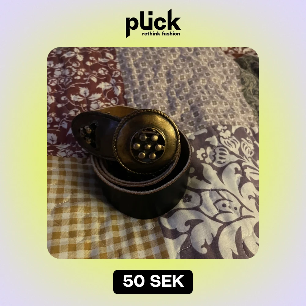 Säljer ett snyggt brunt bälte med ett stort, dekorativt spänne i guld. Bältet har en unik design med nitar och detaljer som ger en vintagekänsla. Perfekt för att piffa upp en enkel outfit eller för en festlig look. Passar både till jeans och klänning!