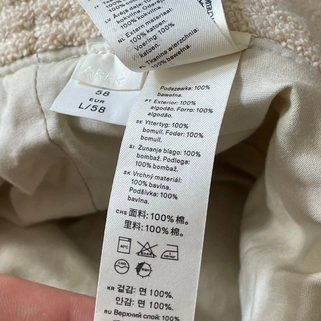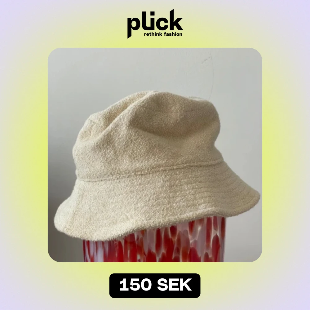 L/58 Ljus beige Frotté fiskarhatt https://www.arket.com/sv_se/women/accessories/product.towelling-bucket-hat-beige.1065885001.html