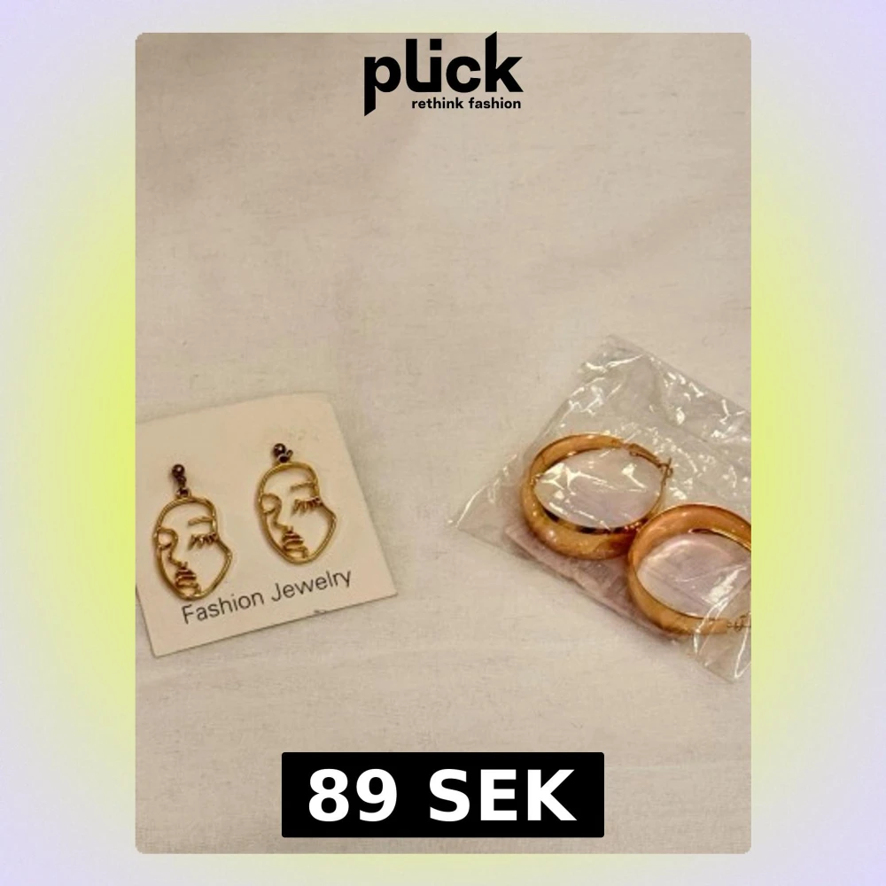 Information om örhängena ℹ️ •Två par örhängen: •Ett par stora guldiga hoops •Och ett par guldiga ansiktsformade statementörhängen. •Har endast testat dem längre tillbaka i tiden men inte använt dem. •Båda är i metall och har en modern, trendig vibe. •Perfekta för att lyfta din outfit med lite extra edge. Mer information ℹ️ ⁉️Vid fler frågor eller om du vill ha fler bilder, skriv till mig så svarar jag genast! 📬Fraktar inom 24h.