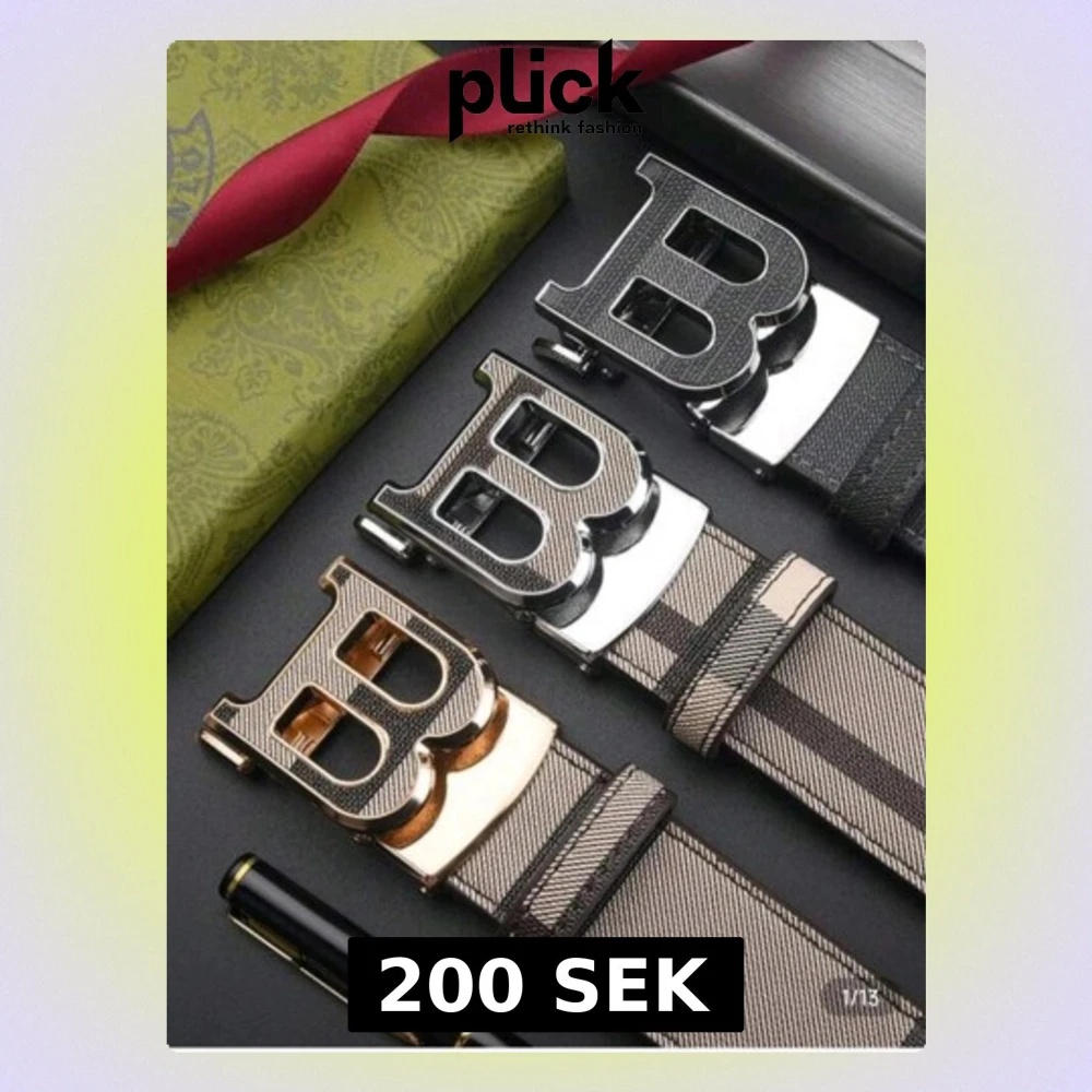 Snyggt bälte i beige med breda svarta ränder och ett stort B-format spänne i metall. Västen har en modern look med tydliga kontraster och detaljer i guld, silver eller svart. Materialet är troligtvis syntet eller polyester och designen känns lyxig och trendig.