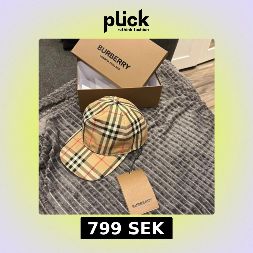 Säljer en klassisk keps från Burberry i ikoniskt beige rutigt mönster med svarta, vita och röda detaljer. Kepsen har justerbar baksida och tydlig Burberry-logga. Tillverkad i bomull och polyester, perfekt för dig som vill ha en stilren accessoar.