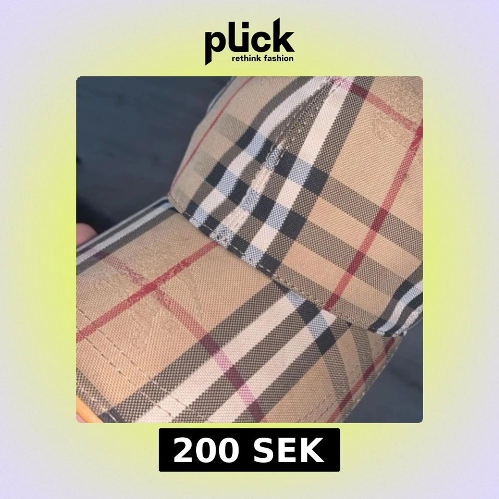 Snygg keps från Burberry i klassiskt beige, svart, vit och röd rutigt mönster. Justerbar rem baktill i ljust läder och insida i svart tyg. Perfekt accessoar för en trendig streetstyle-look.
