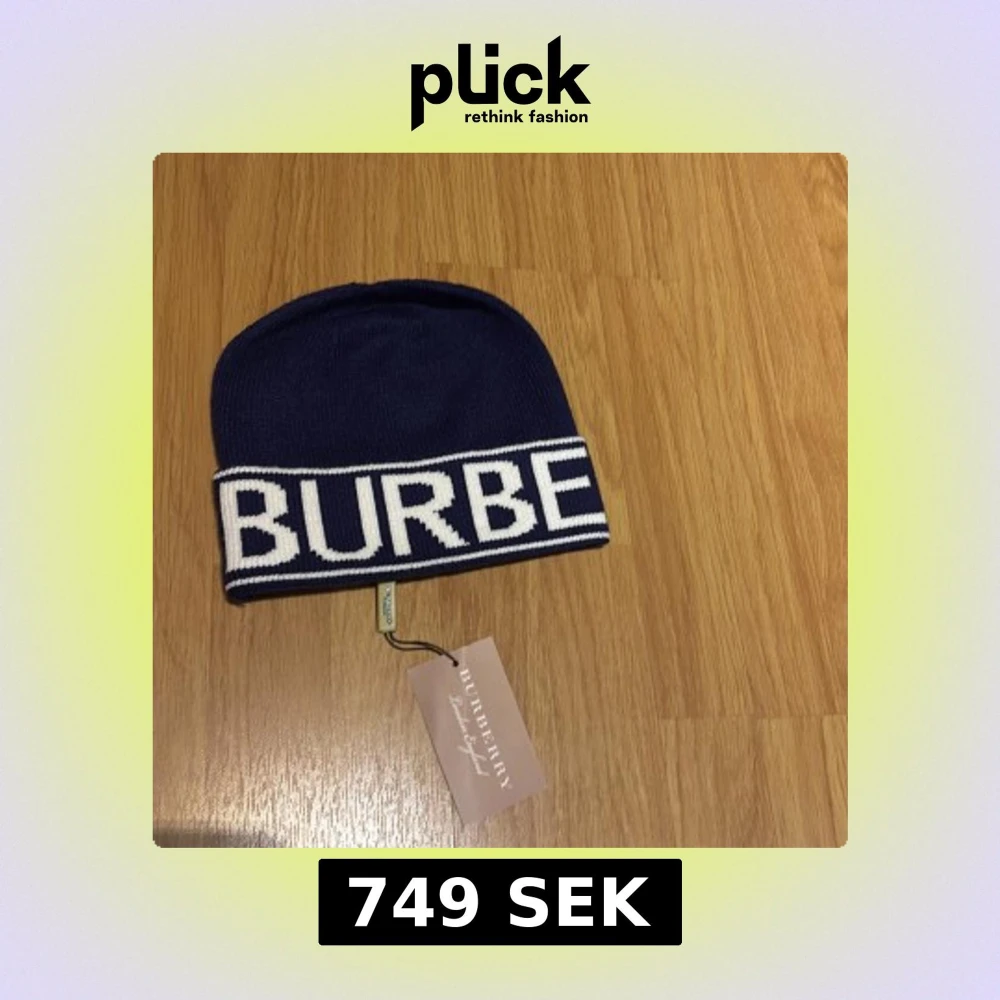 Snygg marinblå mössa från Burberry med vit, stickad logotyp runt hela kanten. Klassisk ribbstickad design i mjukt material som håller dig varm och stilren. Perfekt accessoar för att lyfta din vinterlook.