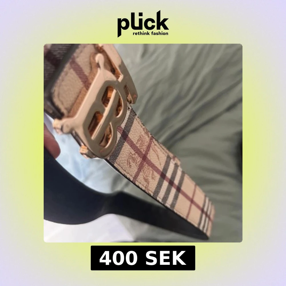 Snyggt bälte från Burberry med klassiskt rutigt mönster i beige, rött och svart. Bältet har ett stort guldigt spänne med Burberrys ikoniska B-logga. Tillverkat i skinn och perfekt för att lyfta vilken outfit som helst.