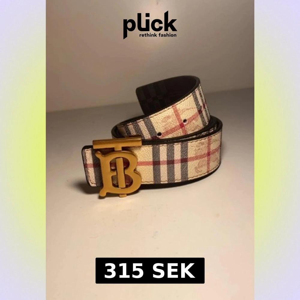 Rutig Burberry bälte med guldspänne