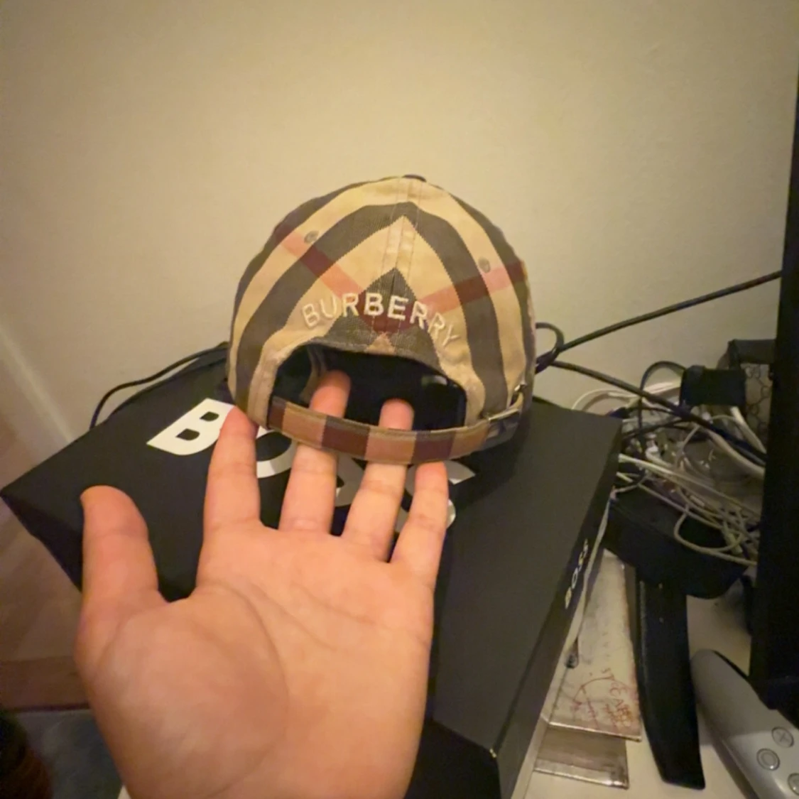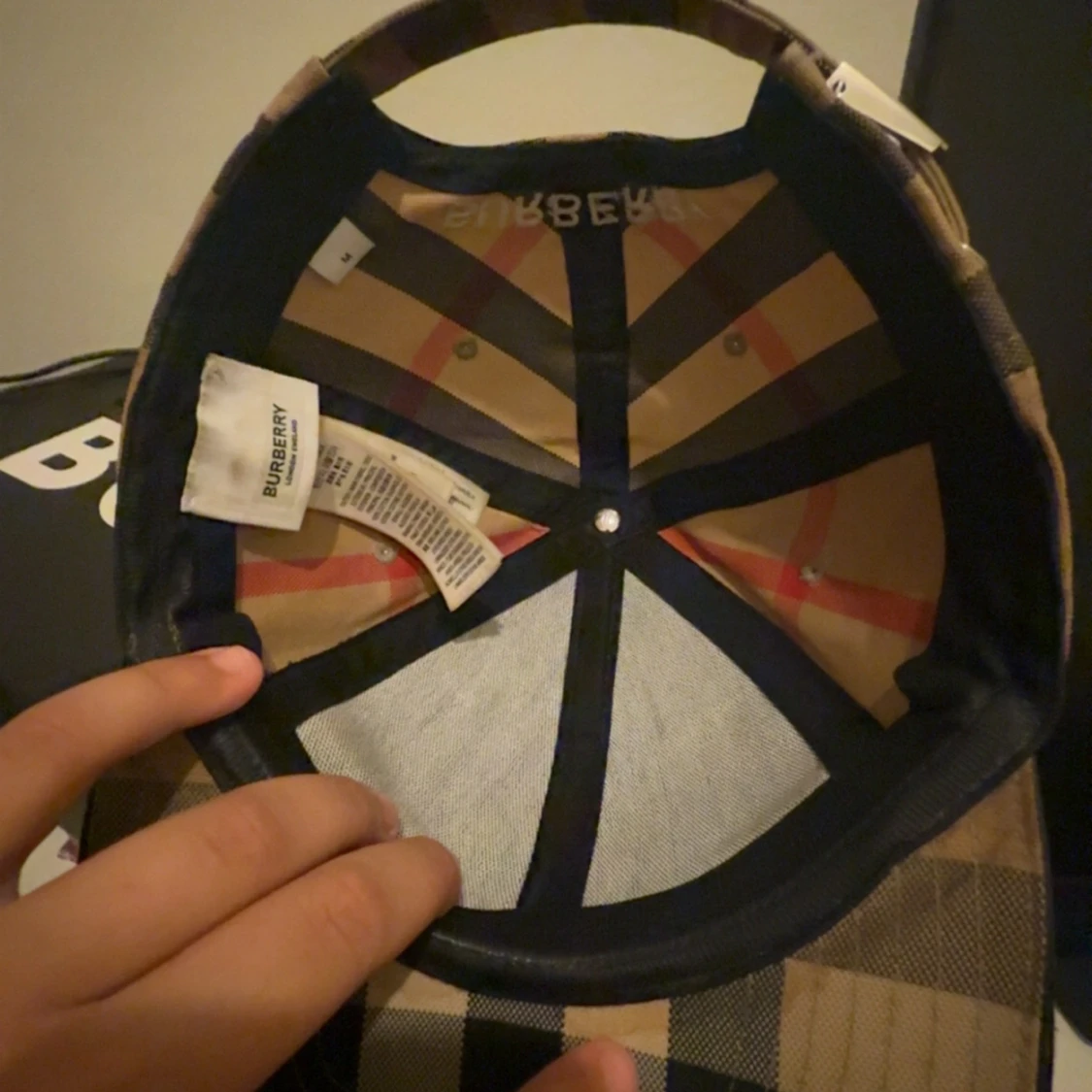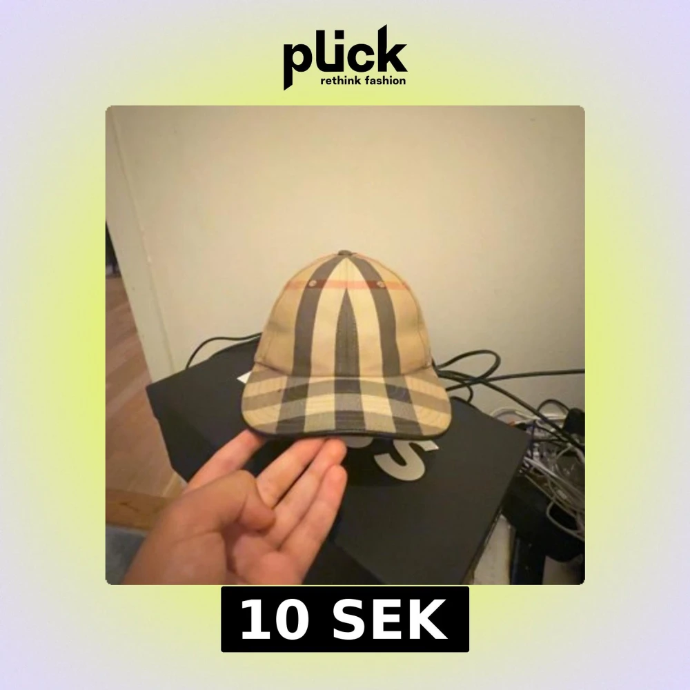 Säljer en snygg Burberry keps med klassiskt rutigt mönster i beige, svart och röda detaljer. Kepsen har justerbar rem bak och broderad Burberry-logga. Tillverkad i bomull, perfekt för dig som vill ha en stilren och ikonisk accessoar.