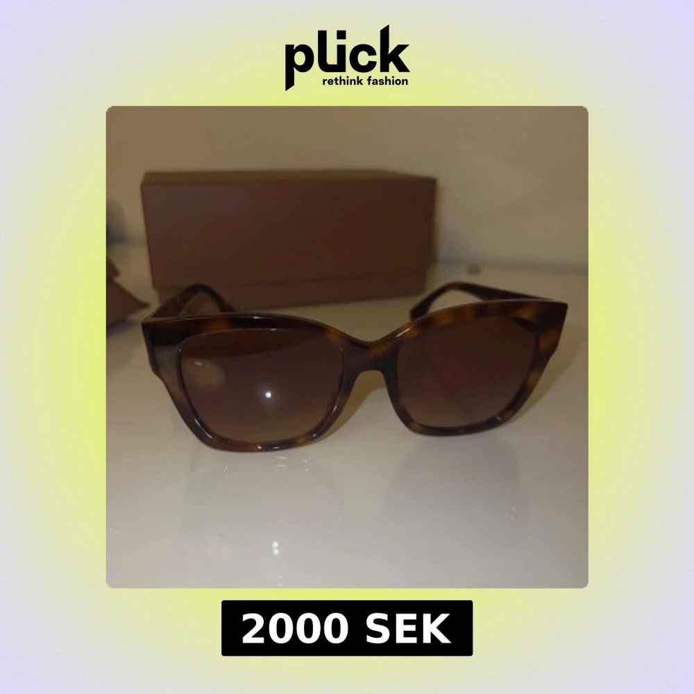 Snygga solglasögon från Burberry med brunmelerat mönster och bred båge i cat eye-form. Guldigt Burberry-logo på sidan och mörka glas. Kommer med originalfodral och box. Perfekt accessoar för att lyfta din stil.