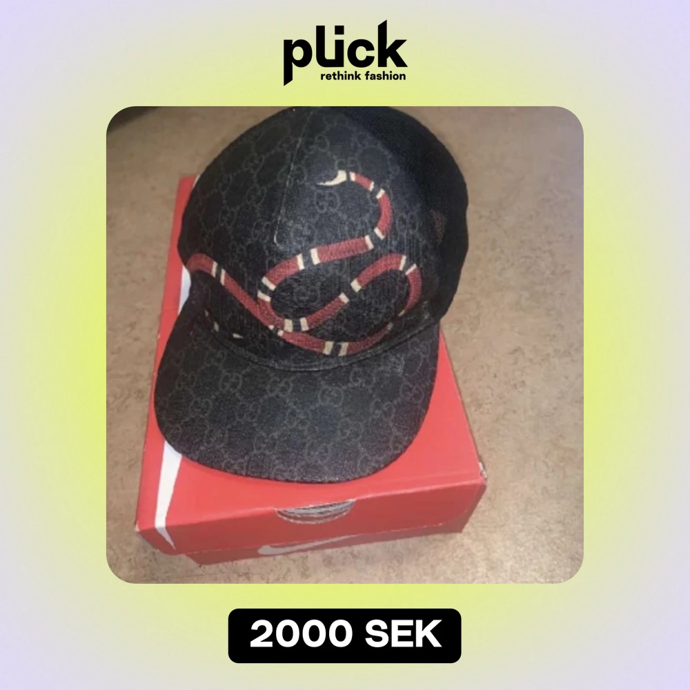 Hej jag säljer min snake king Gucci keps jag kan byta mot nån Annan Gucci keps i storlek M elr L den är 100% äkta skriv om ni vill ha fler bilder så fixar ja det :)