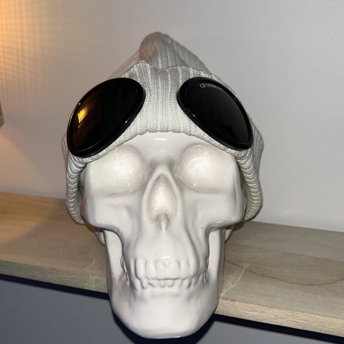 Vit cp company mössa jag fick förra året, använt den mycket men den är i perfekt skick. Kommer ej i cp company lådan för lådan är för stor.