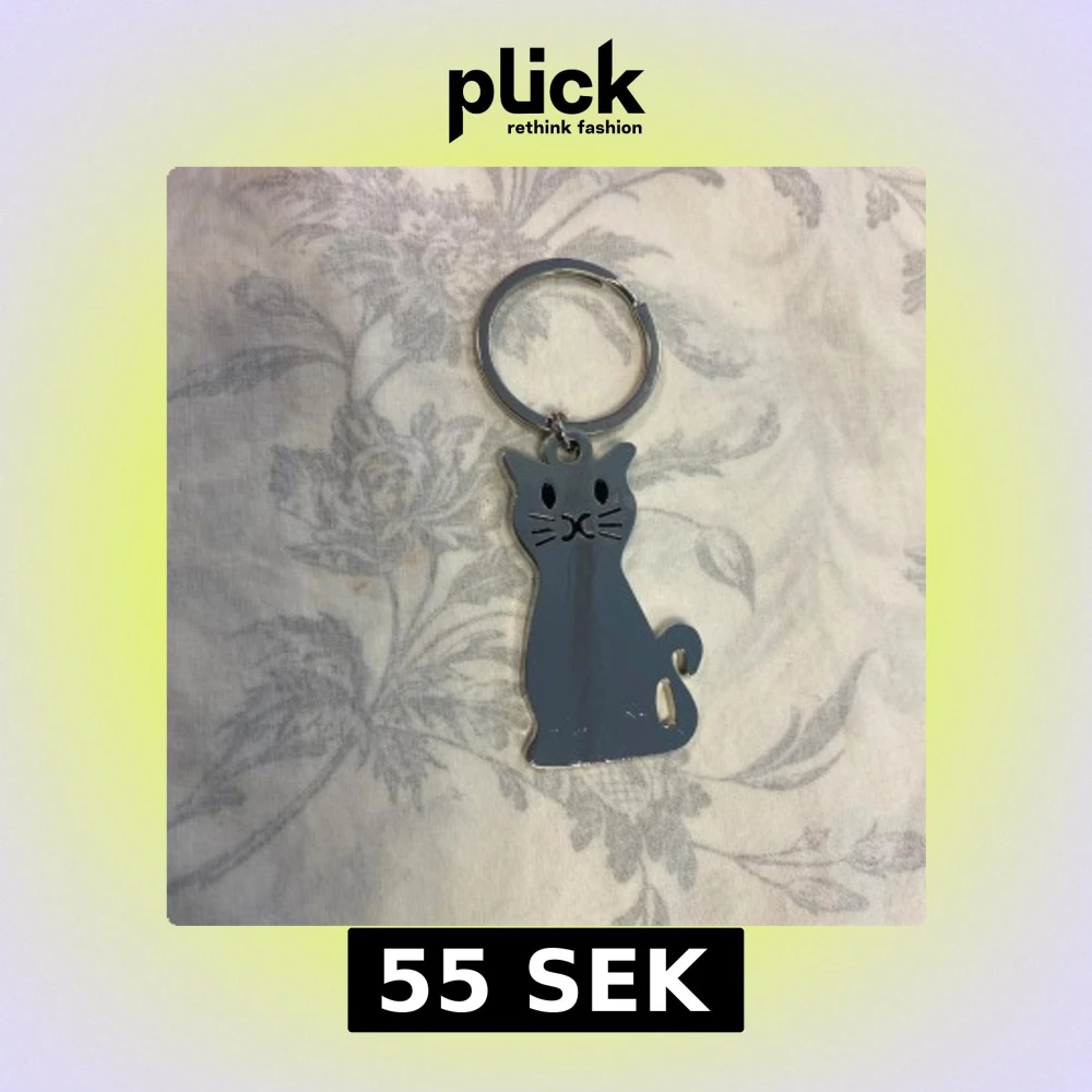 Söt nyckelring i form av en katt, tillverkad i metall med blank silverfärg och svarta detaljer för ögon, nos och morrhår. Katten har en stilren och lekfull design, perfekt att hänga på väskan eller nyckelknippan.