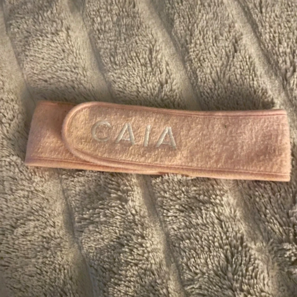 Säljer ett mjukt och bekvämt rosa diadem från CAIA i frotté med broderad logga framtill. Perfekt för att hålla håret borta vid sminkning eller hudvård. Justerbar med kardborre för bästa passform.