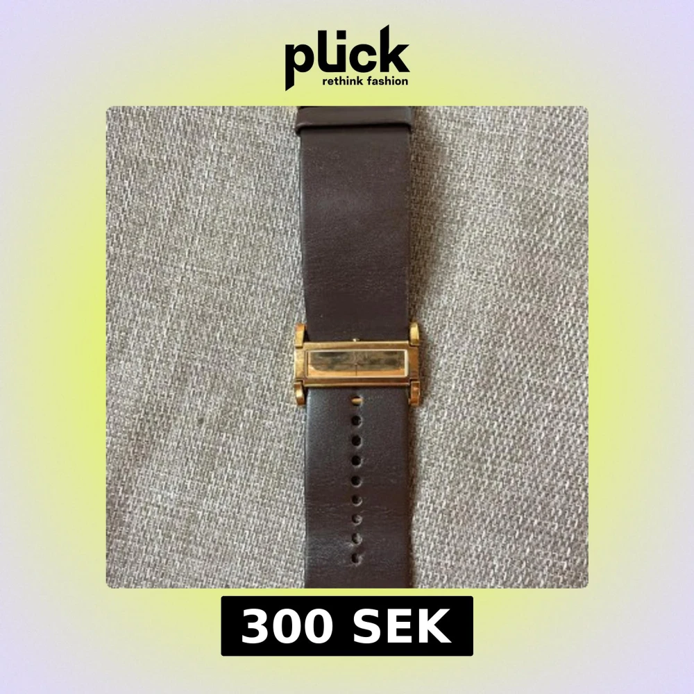 Snygg och unik klocka från Calvin Klein med rektangulärt guldigt ur och bredt mörkbrunt läderarmband. Minimalistisk design med smal urtavla och diskreta visare. Perfekt för dig som gillar stilrena accessoarer med en twist.