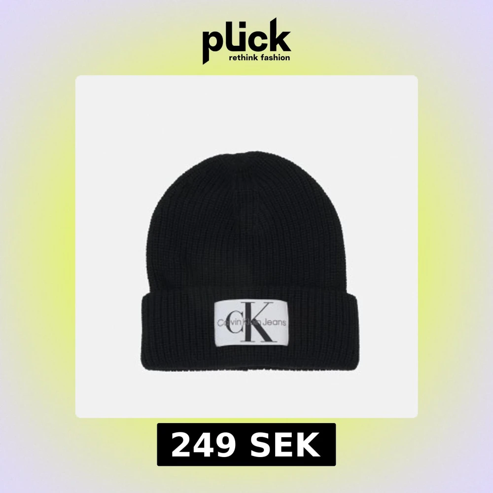 Snygg svart stickad mössa från Calvin Klein med logga på framsidan. Köpt för 549. Skriv för fler bilder. Inga tecken på användning.