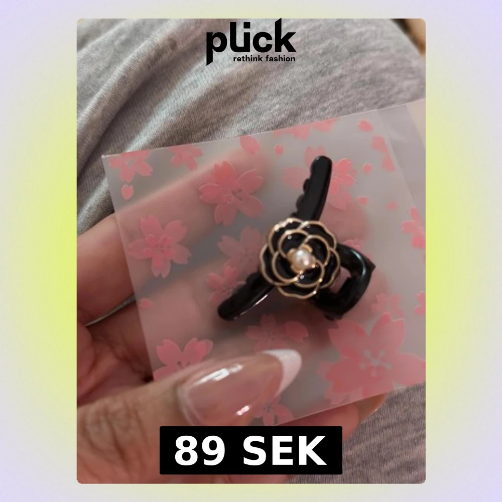 Söt svart hårklämma med en elegant blomformad detalj i vitt eller svart med guldkant och en liten pärla i mitten. Perfekt accessoar för att piffa upp frisyren med en feminin touch. Super cute camelia hair clips