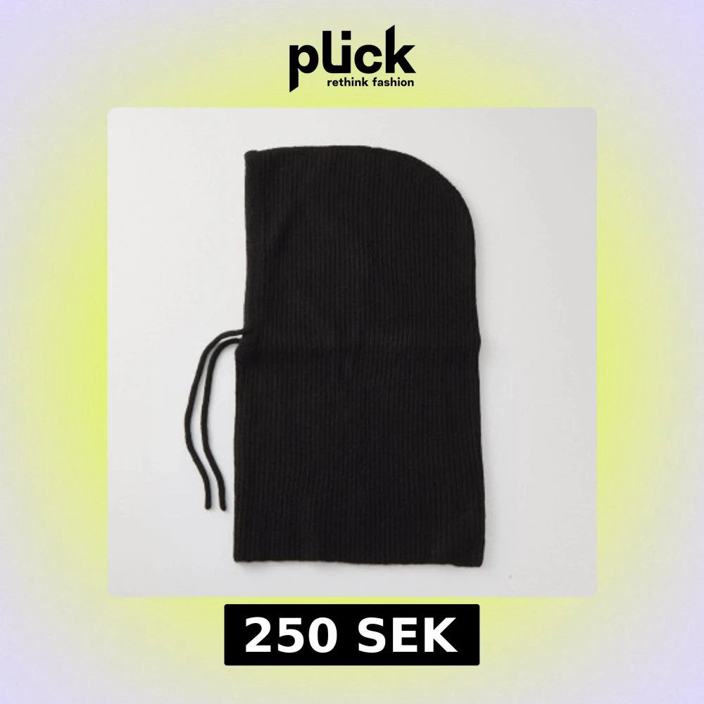 Snygg och praktisk svart ribbad balaclava med dragsko. Perfekt för kyliga dagar och ger en stilren look. Passar både till vardag och utomhusaktiviteter.