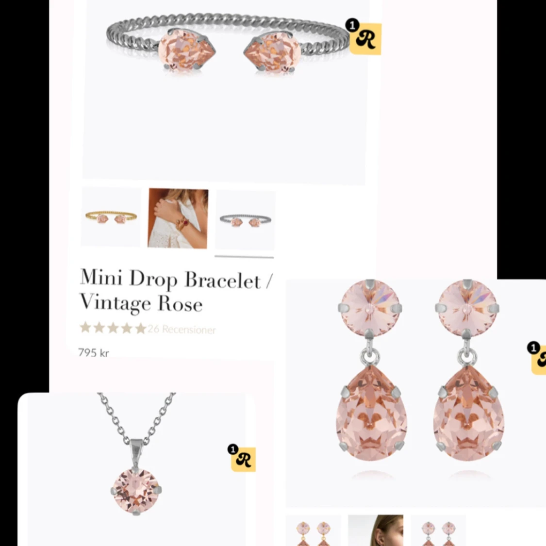Smyckeset från Caroline Svedbom i färgen Vintage Rose. Setet inkluderar ett armband, örhängen och ett halsband. Allt är i nyskick och kommer i deras boxar! 💗