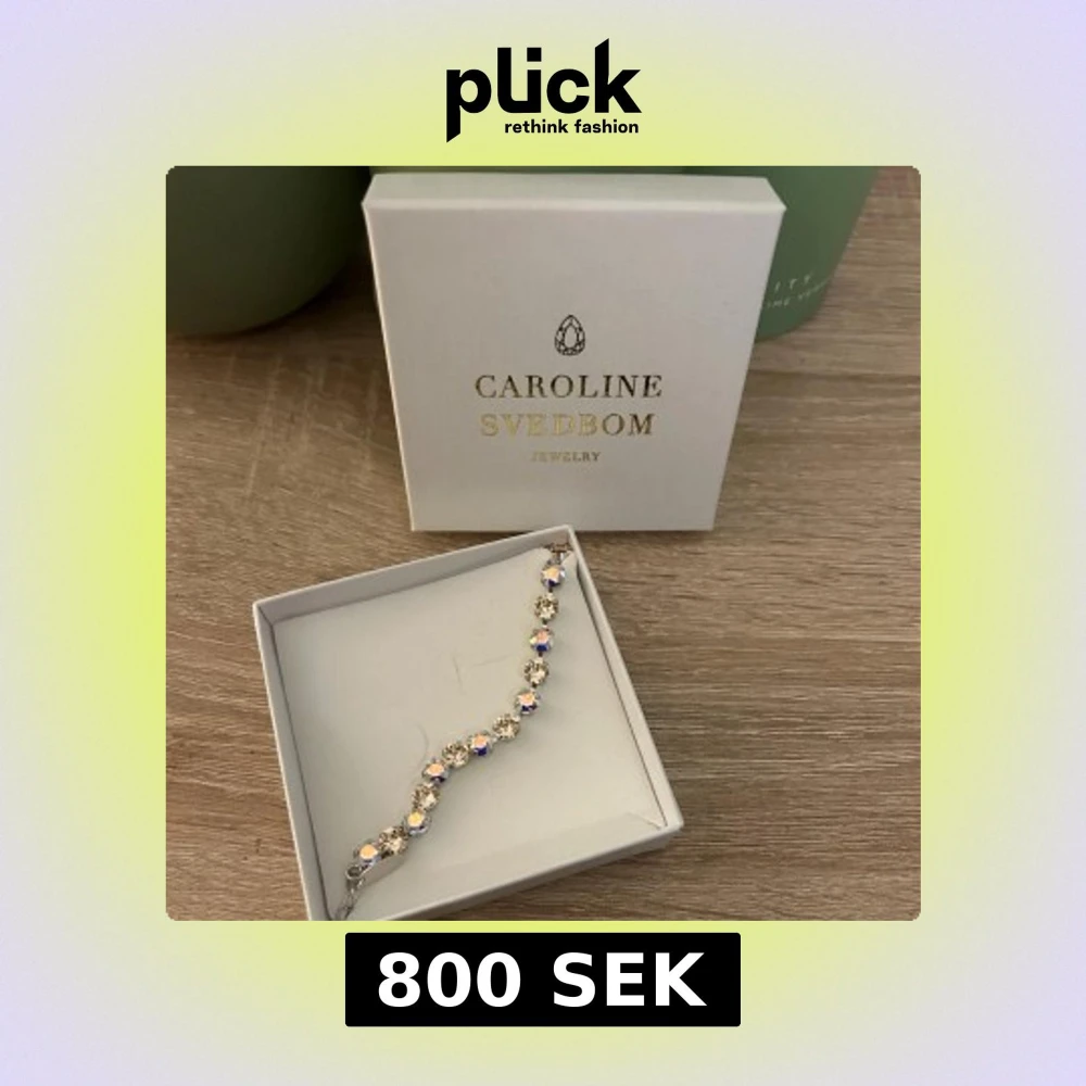 Superfint armband från Caroline Svedbom med gnistrande, runda kristaller i silverfärg. Stenarna har en skimrande effekt som reflekterar olika färger beroende på ljuset. Helt nytt, aldrig använt då jag tyvärr bara använder guldsmycken! Nypris cirka 900-1000kr