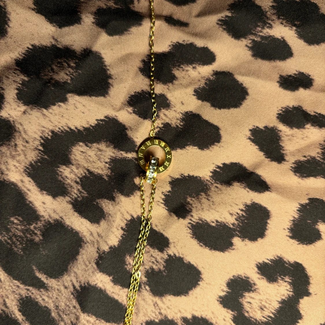 Elegant guldfärgat armband med en unik cirkulär detalj, tillverkat i rostfritt stål och justerbart för perfekt passform.