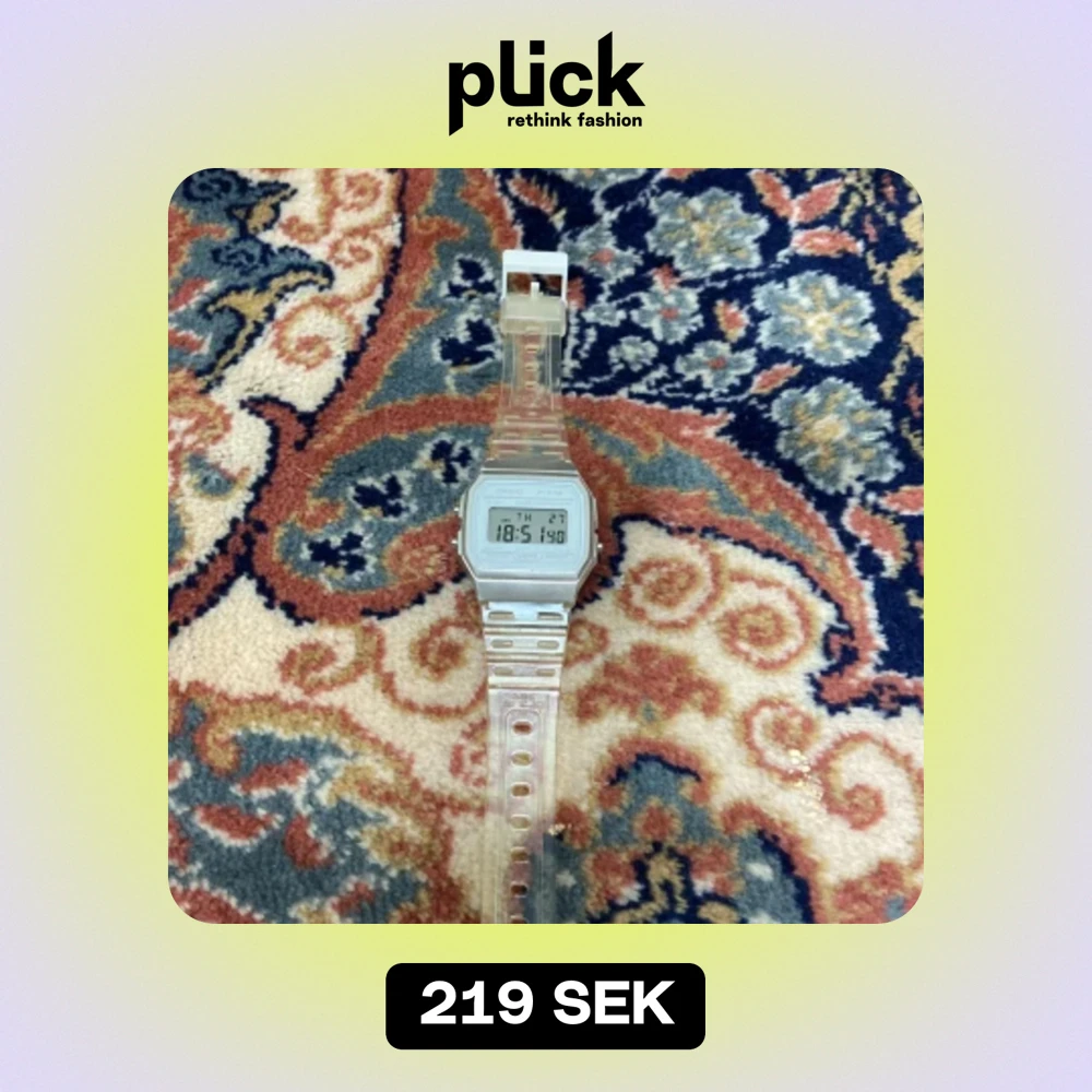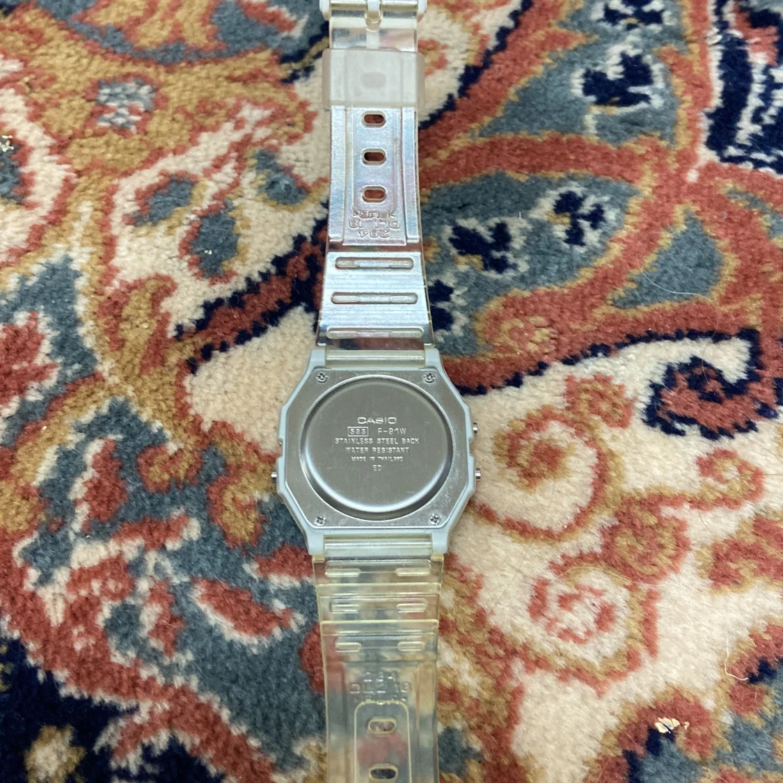 Cool digital casio klocka, genomskinlig band med vita accenter. Använt skick
