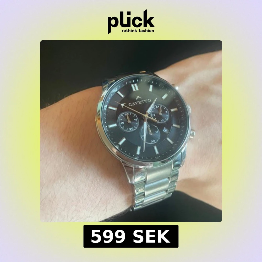 Snygg klocka från märket Cavetto. Klockan är mycket bra skick! Nästan nyskick! Bara använd några gånger. Den är rostfritt stål i ljus silvrig färg, köptes för 1299kr. Hör av er vid frågor!🔥🤝