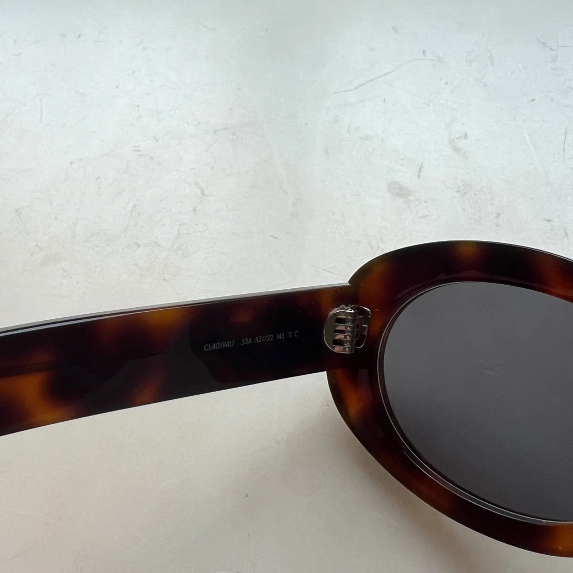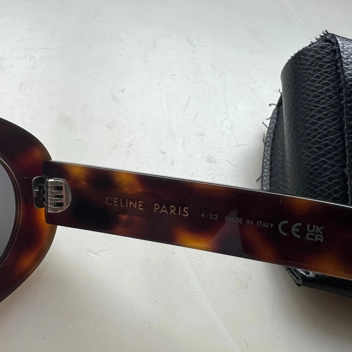 Snygga och populära solglasögon från Celine Paris i brunmelerad sköldpaddsmönstrad plast med mörka glas. Guldiga Celine-loggor på sidorna och medföljande svart fodral. Har bytt glaset till ett mer reptåligt glas då jag repade ner förra glaset ❣️ Nypris 4950 kr ❣️