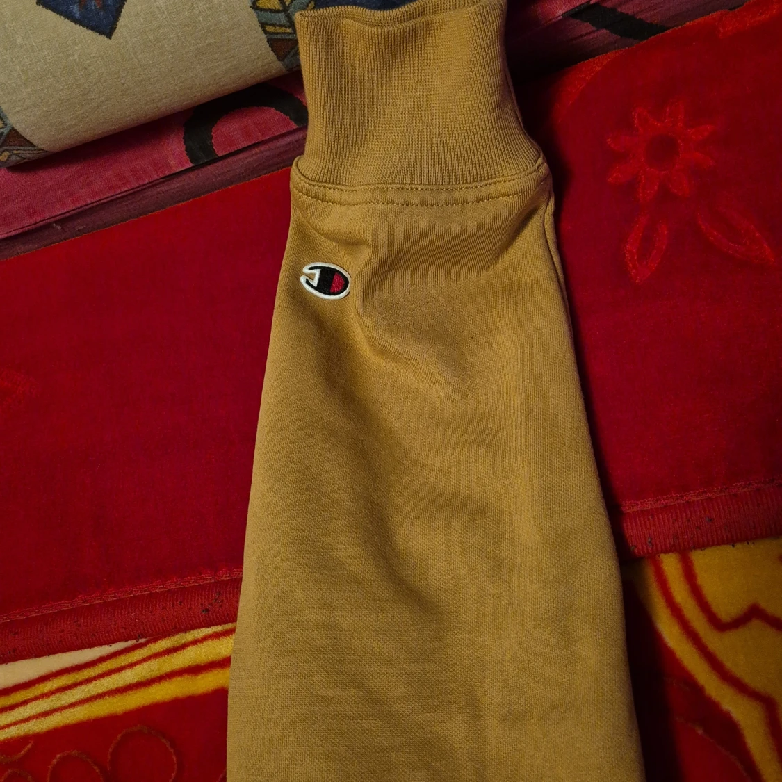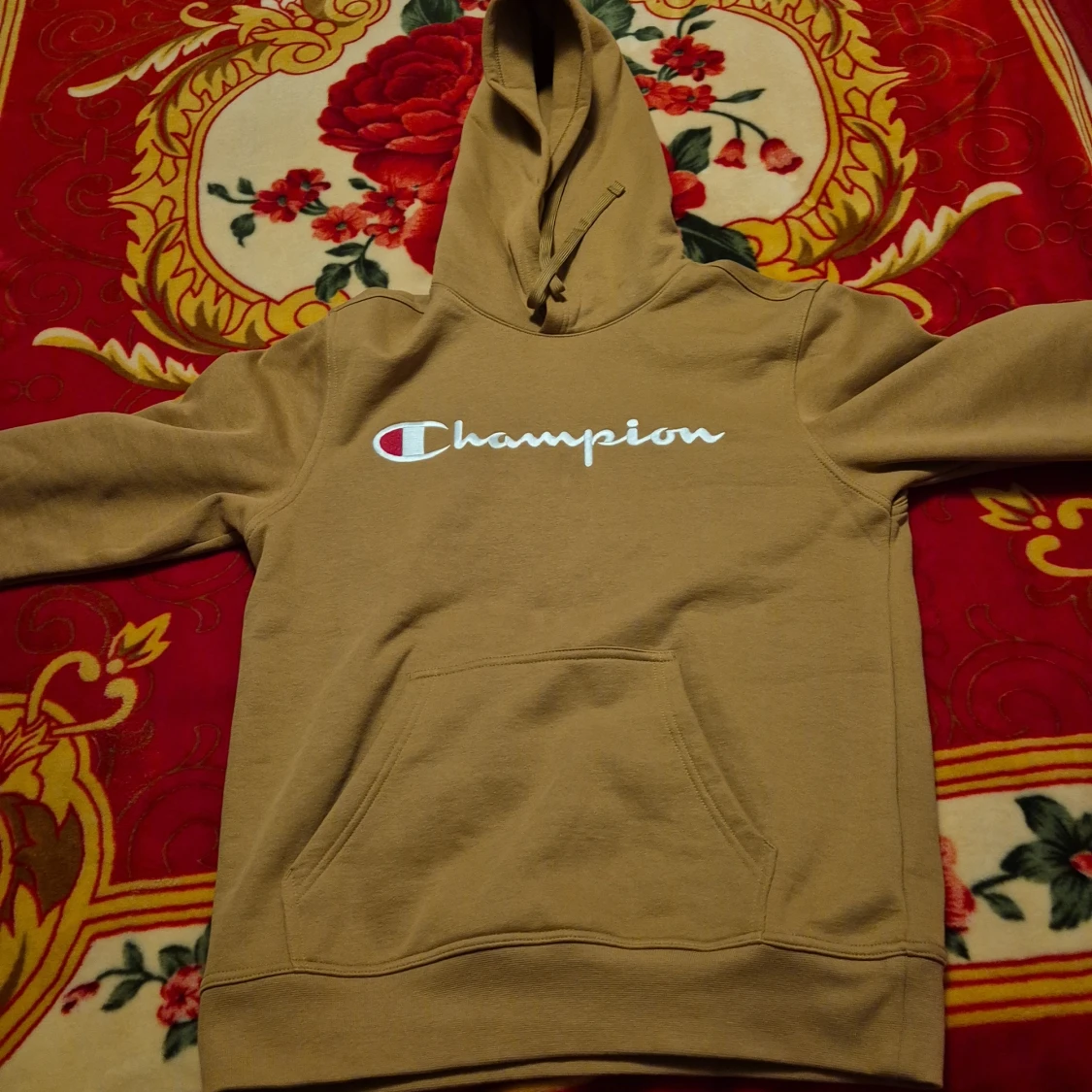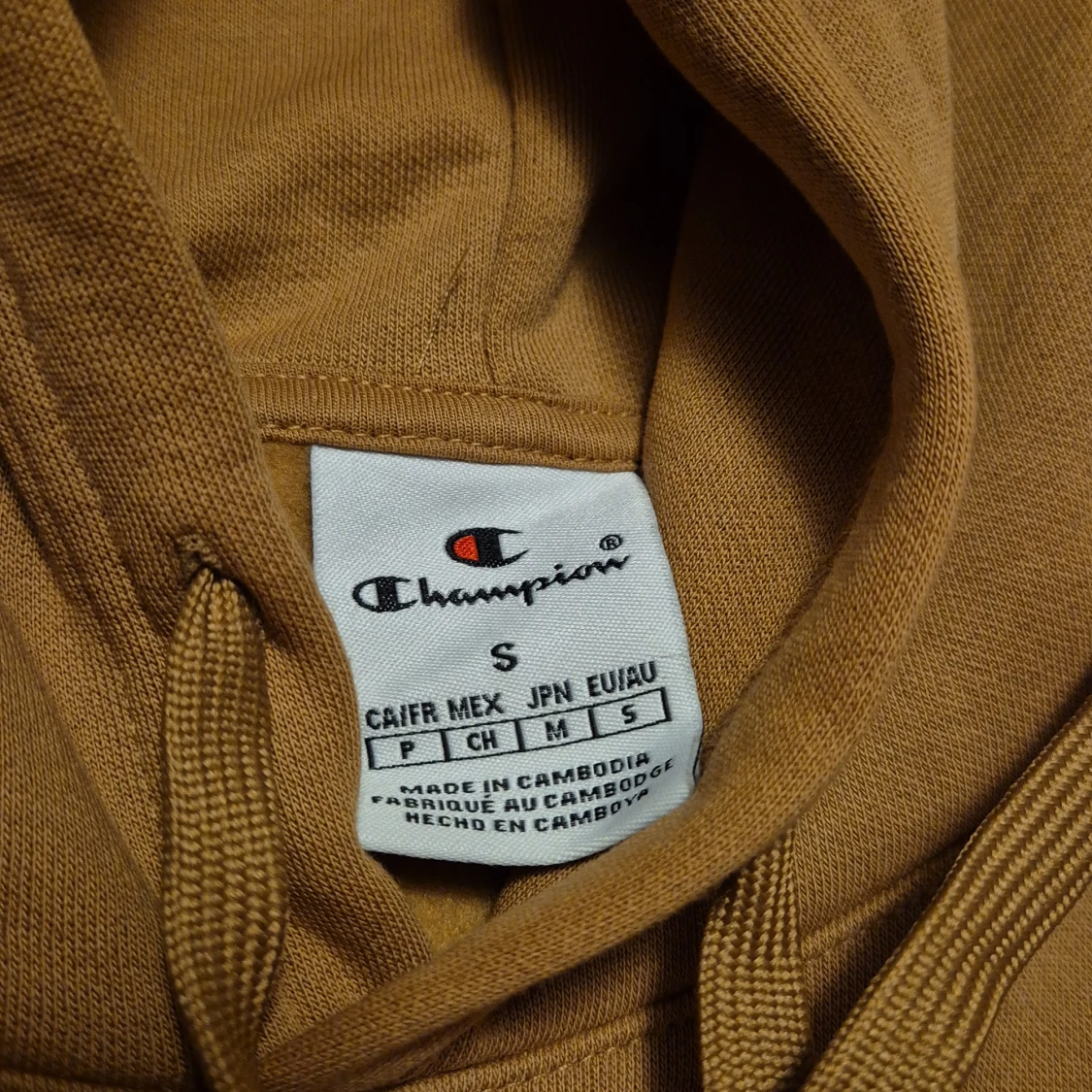 Säljer en hoodie från Champion med klassisk logga på bröstet. Tröjan har en stor ficka framtill och ribbade muddar vid ärmsluten. Perfekt för en avslappnad stil. Hör av dig vid intresse!