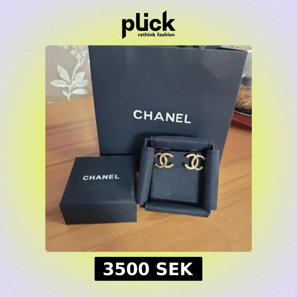 Säljer ett par ikoniska Chanel örhängen i guldtonad metall med gnistrande strass-stenar. Klassisk CC-logga, push back-lås och exklusiv känsla. Kommer med original ask och påse. Perfekt accessoar för att lyfta din look.