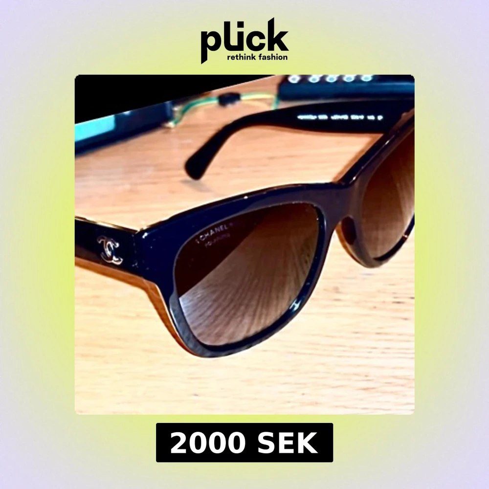 Snygga svarta solglasögon från Chanel med en klassisk design. Bågarna har en elegant form och pryds av Chanels ikoniska logotyp i guld på sidan. Perfekta för att ge en lyxig touch till din stil.