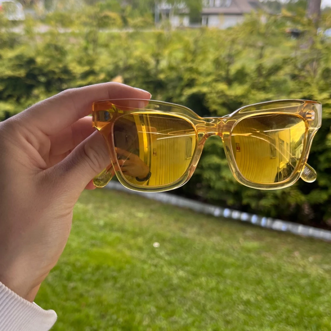 Gula chimi solglasögon. Modellen hette 005, nu heter de 07. Gula med spegelglas.