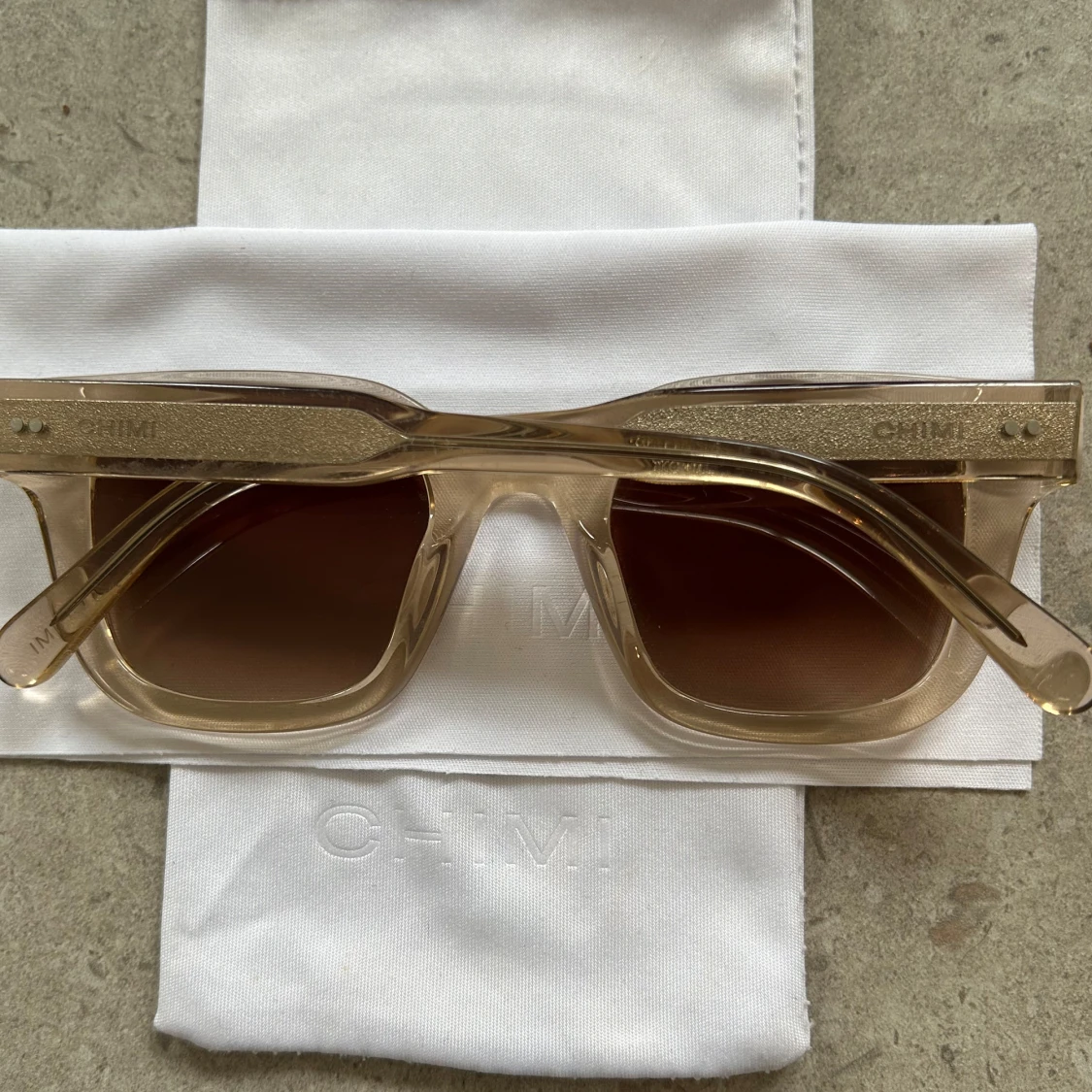 Säljer ett par solglasögon från Chimi, glasögonen är i modellen 04 och passar både tjejer och killar och dom är perfekta för en solig dag! Skick 8/10 och är väl omhändertagna.