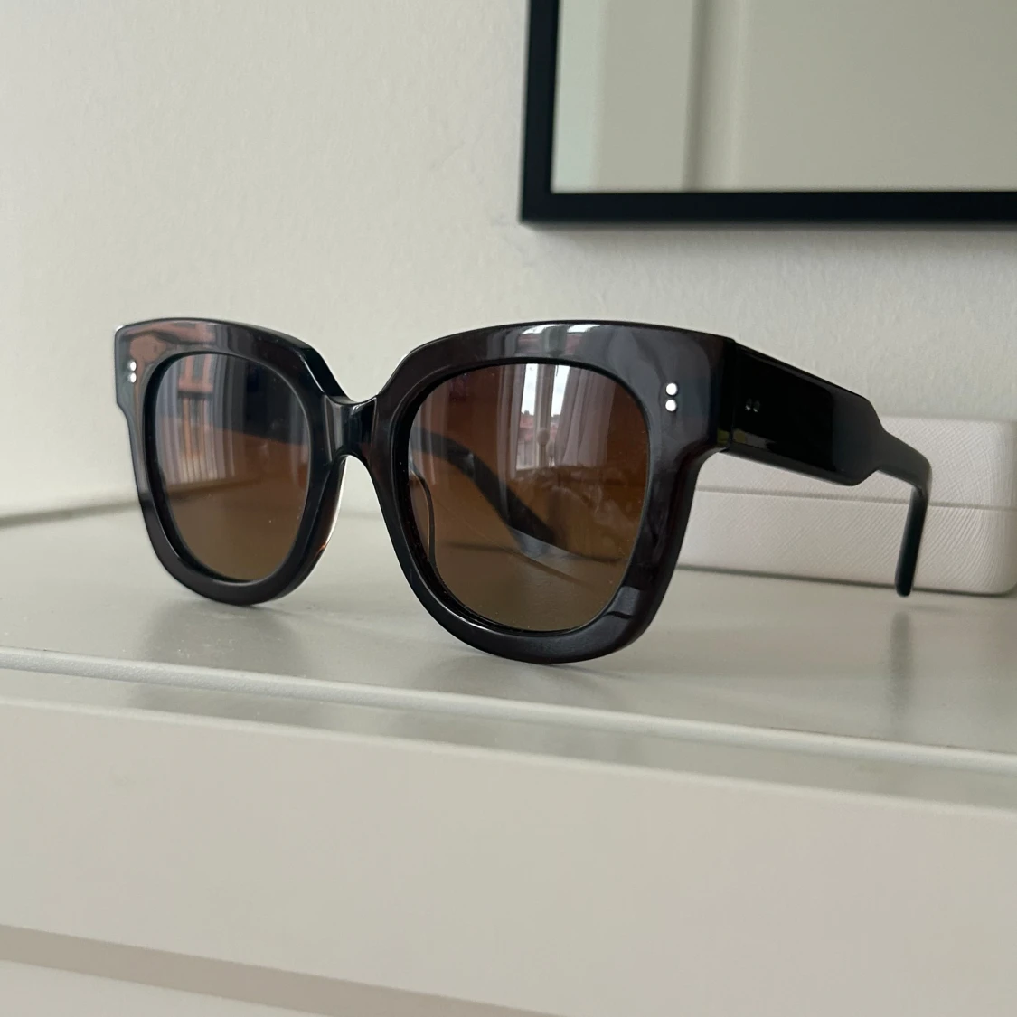 Bruna solglasögon från Chimi i modellen 08. Väldigt sparsamt använda och är i mycket fint skick utan repor.