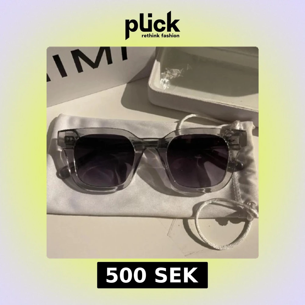 Snygga solglasögon från Chimi med transparent, fyrkantig båge och mörka linser. Riktigt clean och modern look som passar till allt. Kommer med originalfodral och box. Perfekta för dig som vill sticka ut med stilrena accessoarer.