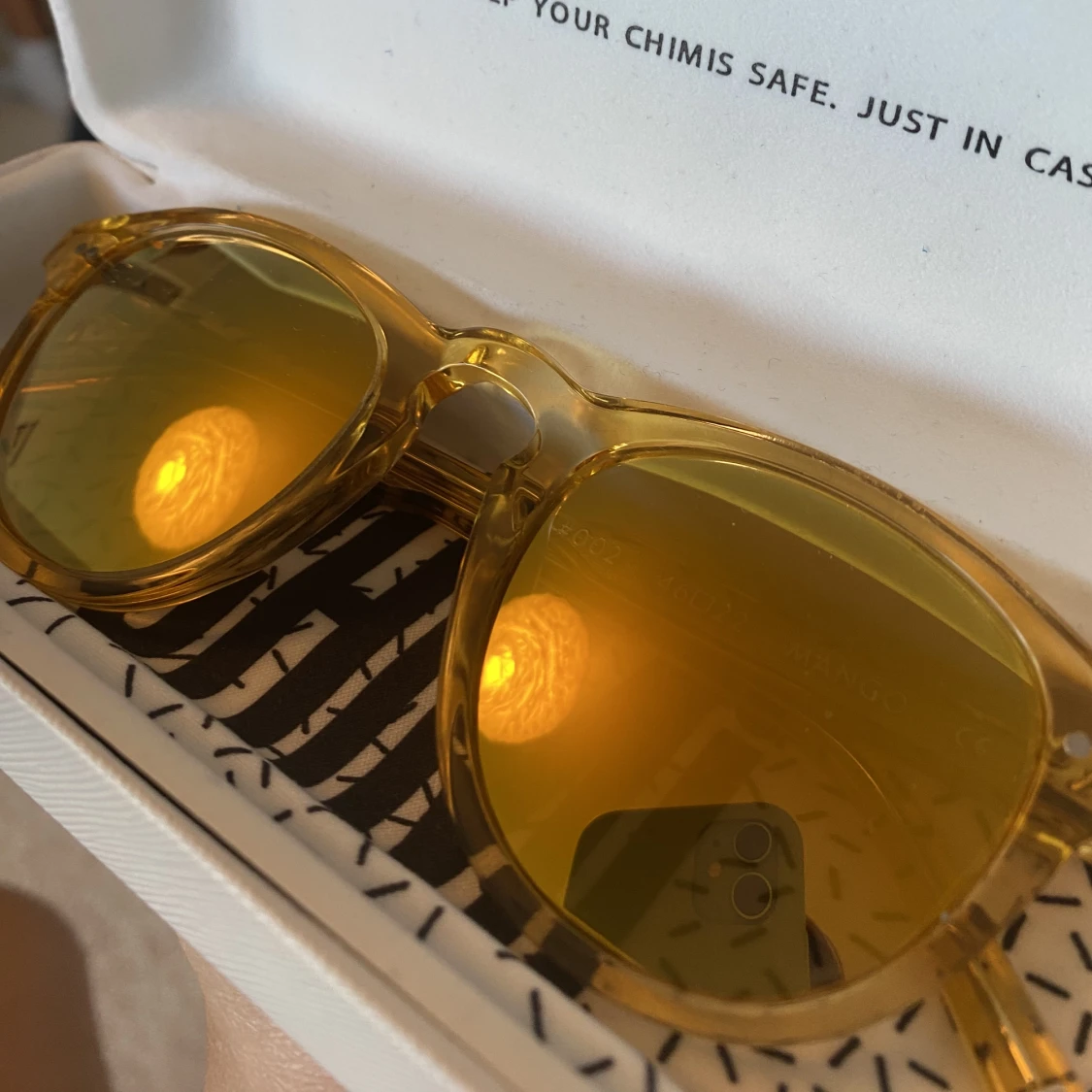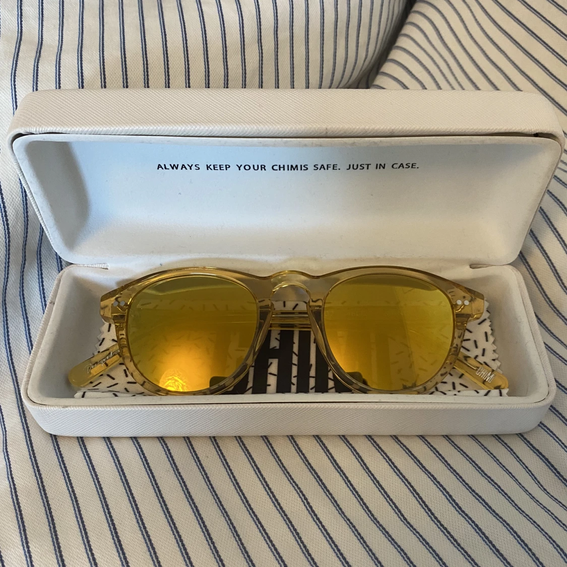 Säljer dessa coola Chimis i modellen #002! De är i färgen Mango och har spegelglas!! De är använda några gånger men har inga repor alls! ❣️