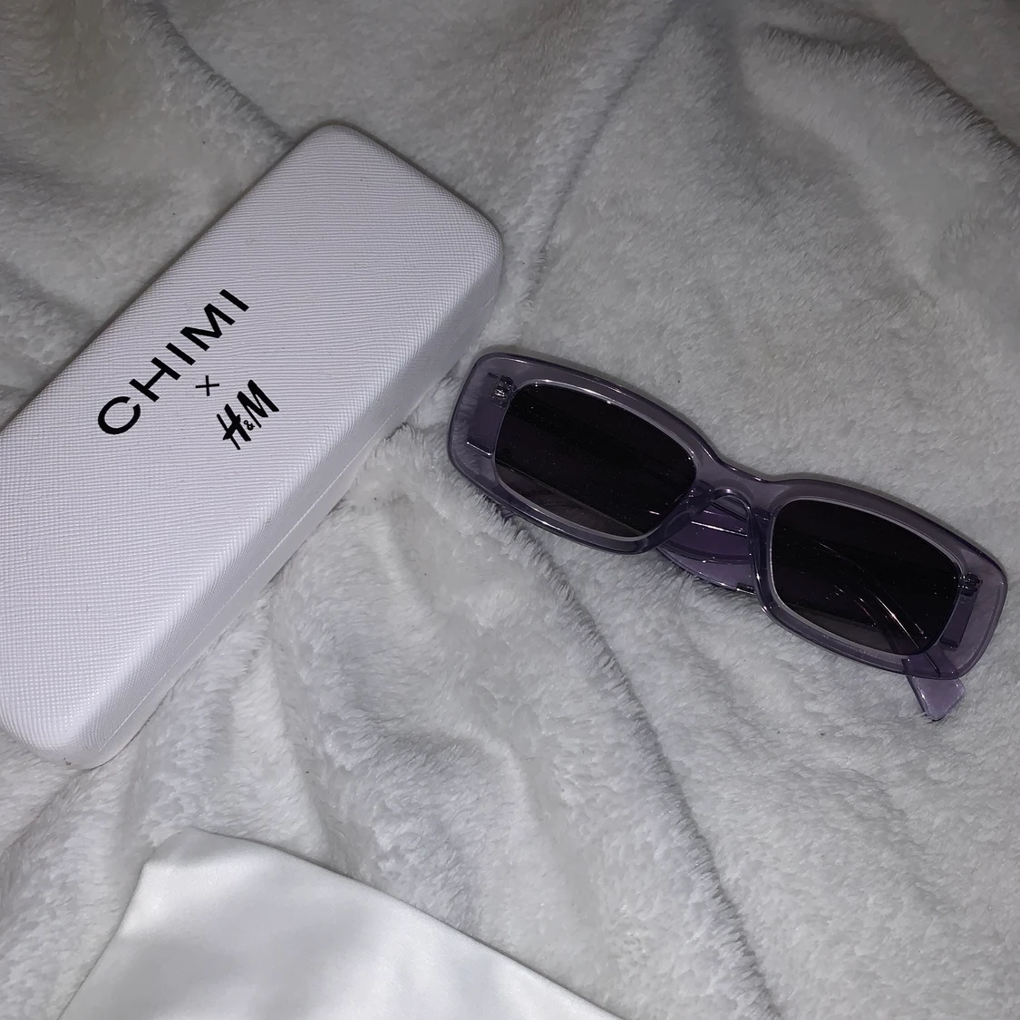 Så fina lila solbrillor från chimi x hm. köpta för 400 kr och använda 1 gång då dom satt lite tajt och dom är slutsålda på hemsidan. Så säljer dom för 300 plus frakt 66 kr✨