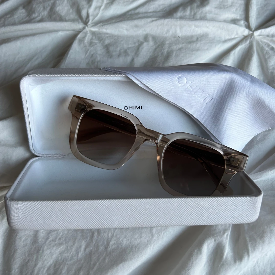 Säljer mina chimi glasögon som är i färgen 04 ecru. Glasögonen är knappt använda därav priset. Hör av dig om du vill ha fler bilder. Fodralet och putsduk o lådan den kom i medkommer!!🫶🏽 Pris kan diskuteras