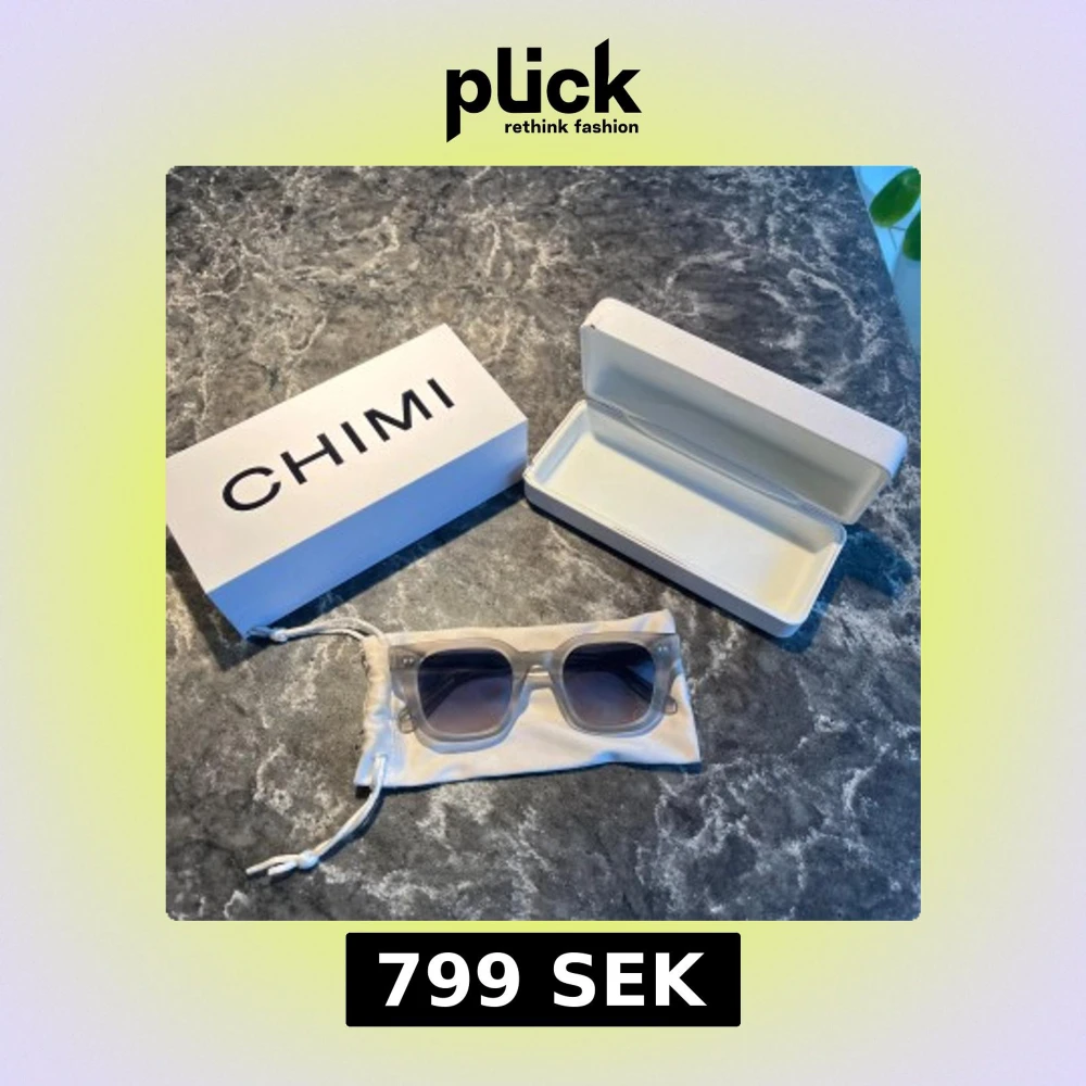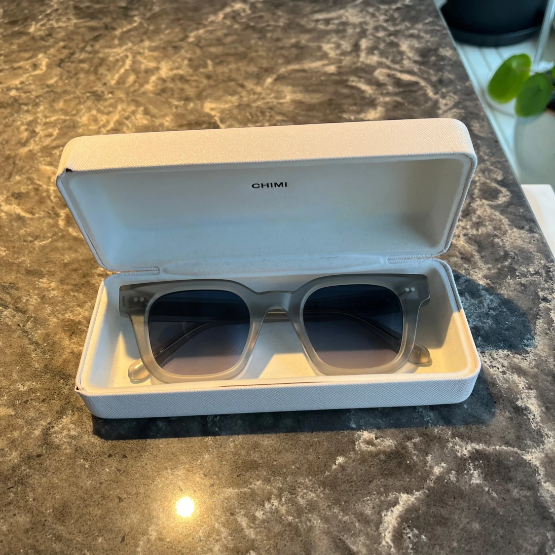 Snygga solglasögon från CHIMI med transparent grå båge. Kommer med originalfodral och tygpåse. Som nya, använt fåtal gånger.