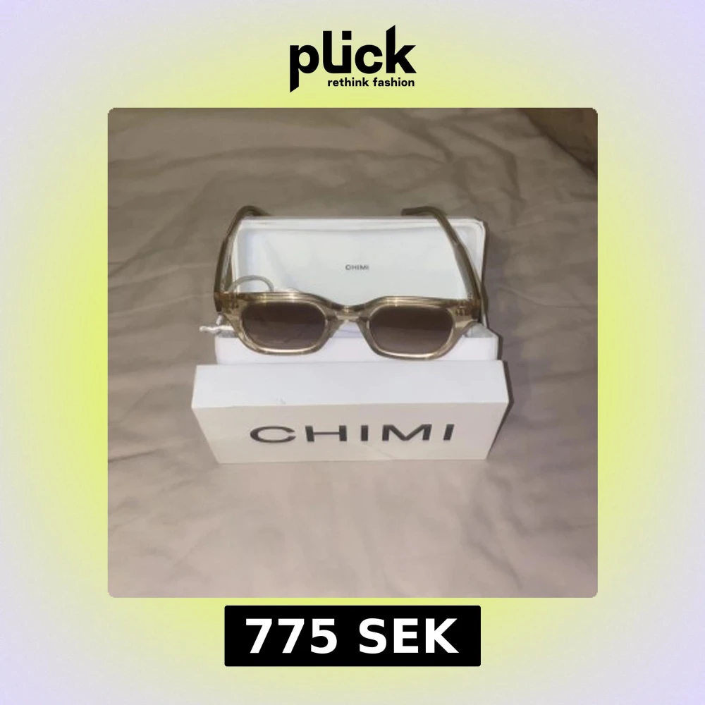 Snygga transparenta solglasögon från Chimi med fyrkantig form och bruna tonade glas. Perfekta för en stilren look. Kommer med originalförpackning. De är 100% äkta från hemsidan Chimi använda bara några gånger.