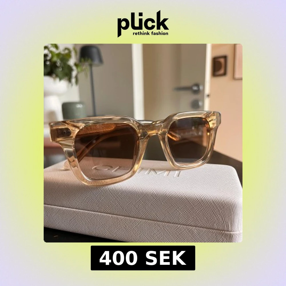 Snygga solglasögon från CHIMI med transparent beige båge och bruna glas. Rektangulär form med coola detaljer på skalmarna och diskret CHIMI-logga. Perfekta för att lyfta din stil med en modern touch. Inga repor