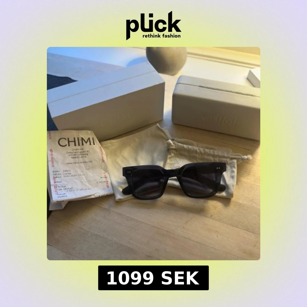 Snygga svarta solglasögon från Chimi med en fyrkantig form och mörka linser. Modellen heter Core 04 och har en stilren design med små silverdetaljer på bågarna. Perfekta för att ge en cool touch till din outfit. Har används extremt sparsamt, är mer eller mindre helt nya!