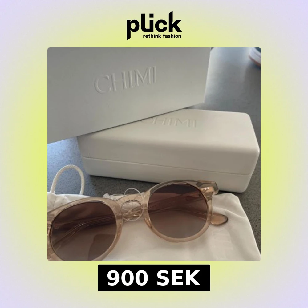 Snygga solglasögon från Chimi med transparent beige båge och runda, mörka linser. Perfekta för en stilren look. Helt nya och oanvända. Man får med påsen och fodralet som låg i☀️