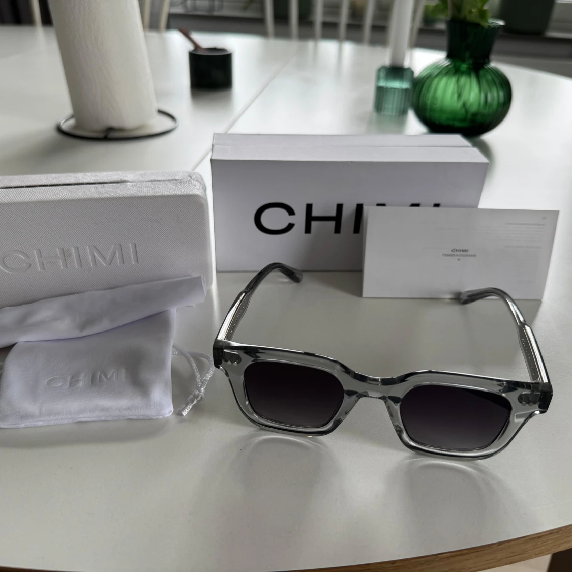 Snygga solglasögon från Chimi med en fyrkantig form och transparent båge. Glasen är mörka och ger ett coolt intryck. Perfekta för soliga dagar och kommer med ett skyddande fodral och putsduk. Använda 4 gånger.