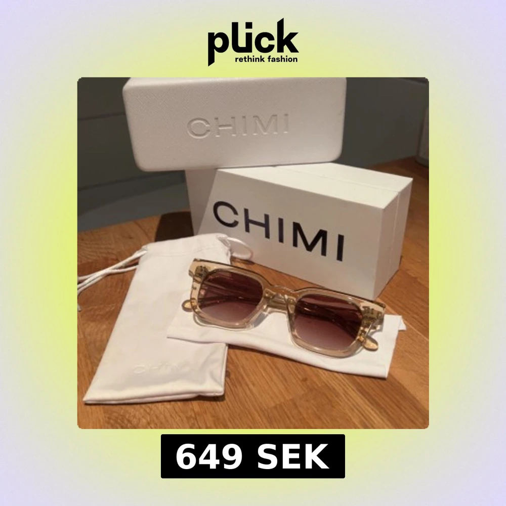 Snygga solglasögon från Chimi med transparent beige båge och fyrkantig form. Glasen är bruna med en lätt toning som ger cool vibe. Kommer med originalfodral och box. Perfekt accessoar för att lyfta din stil. Använda ett fåtal gånger,inget som märks. | För mer frågor och funderingar skriv till mig.✨