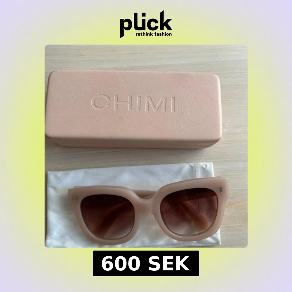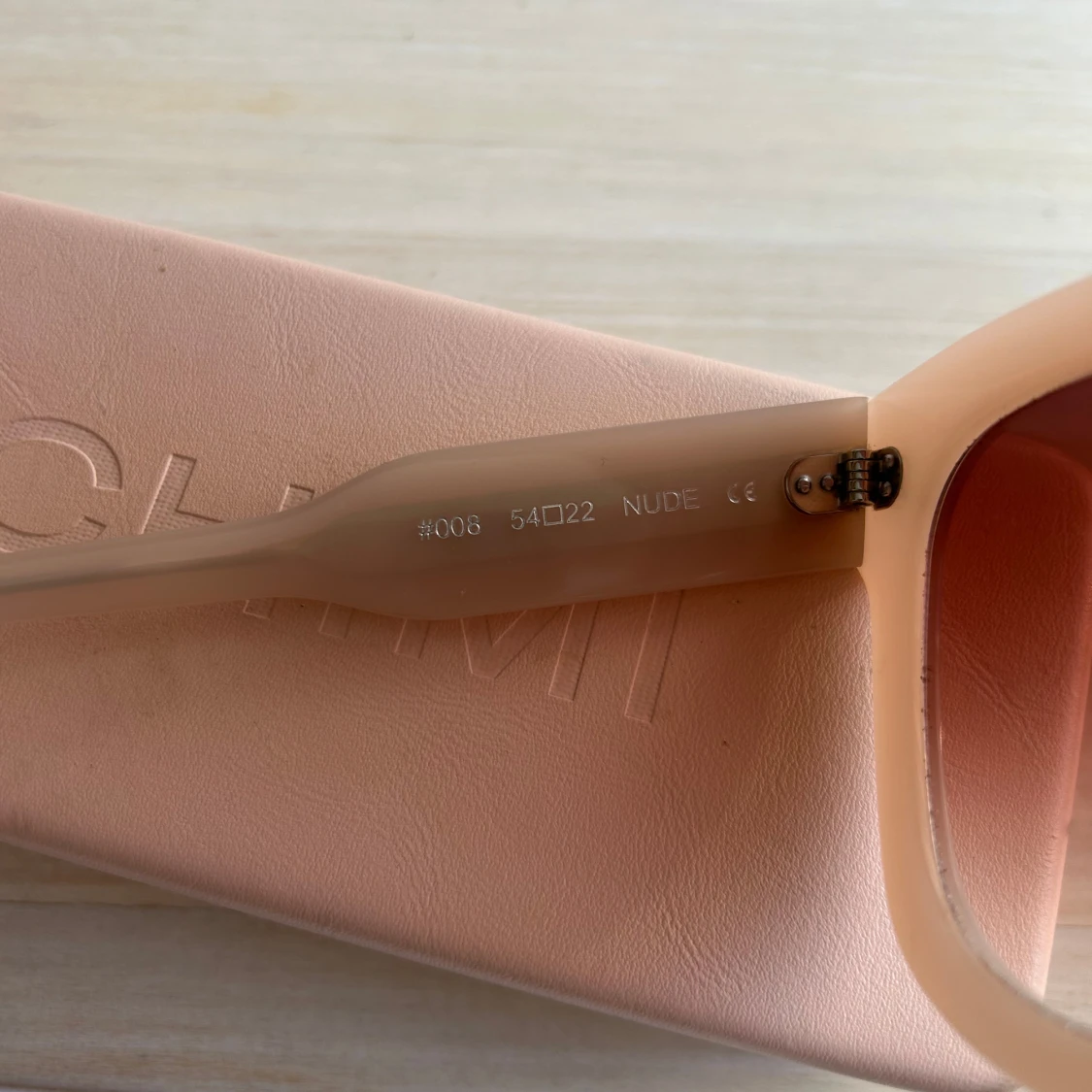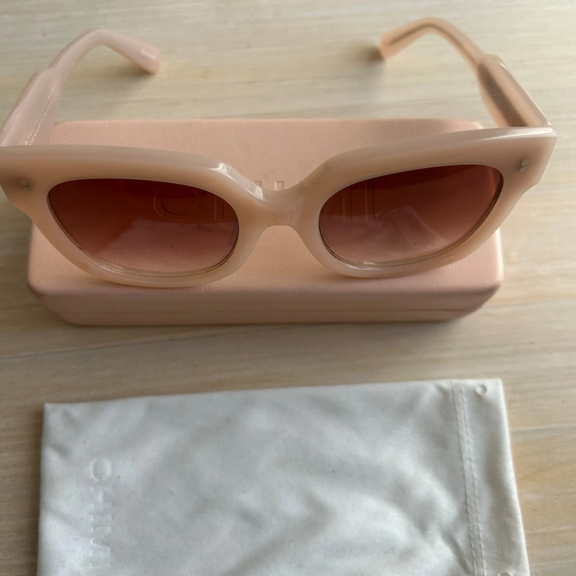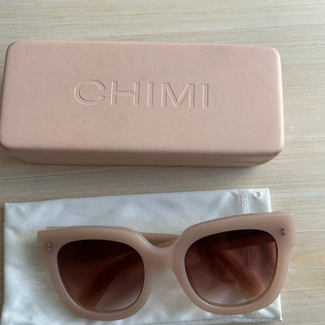 Så fina solglasögon från Chimi i den limiterade färgen Nude som inte längre säljs. Modellen är 08💓. Finns en tunn rispa på ett av glasen men inget som syns tydligt eller märks av vid användning. ❣️