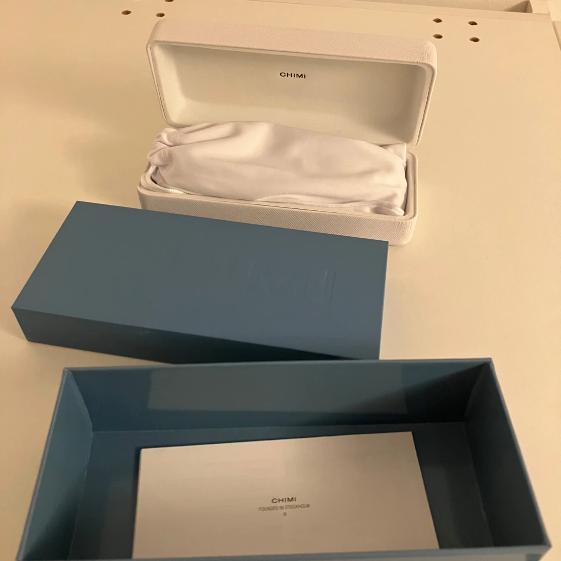 Blåa chimi’s 1400kr nypris som jag köpte förra sommaren men de var inte snygga på mig. Är oanvända och med originalförpackning. Länk där jag köpte: https://chimi-online.com/se/p/sting-blue-sunglasses