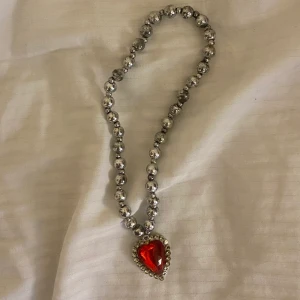 Tajt men töjbart halsband med söta pärlor och ett hjärta❤️ slitet men det gör bara looken. (paketpris vid köp av fler smycken) frakt: 11kr