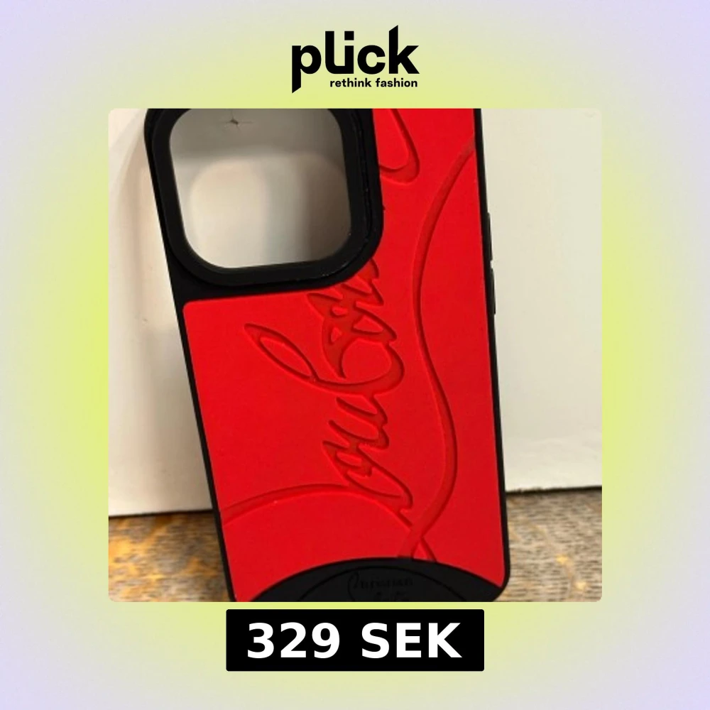 Snygg mobilväska från Christian Louboutin i rött och svart med ikonisk logga i relief. Utsidan är röd med svart kant och detaljer, baksidan är glittrigt svart. Perfekt accessoar för dig som vill sticka ut med lyxig vibe.
