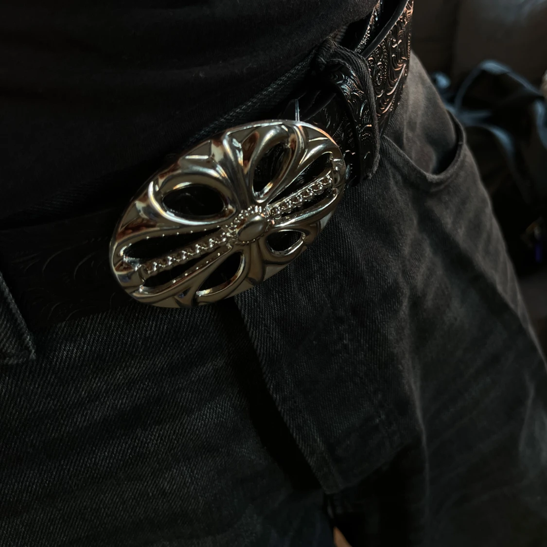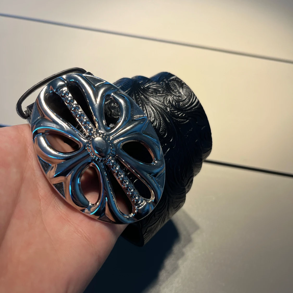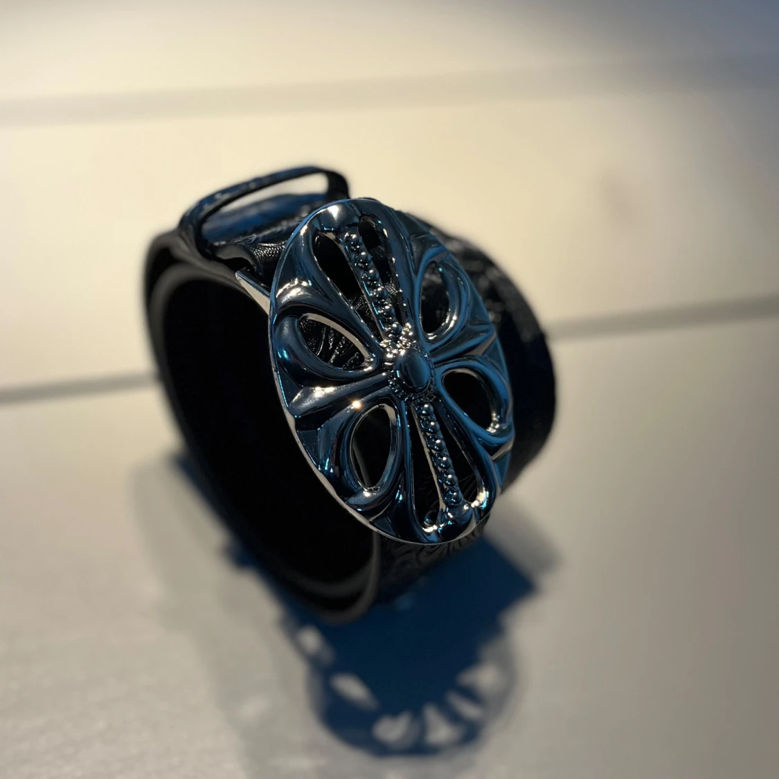 Säljer mitt svarta läder Chrome Hearts bälte. Spänner har en cool silvrig korsdesign. Det är i ny skick och i stl 120cm Pris kan diskuteras😊